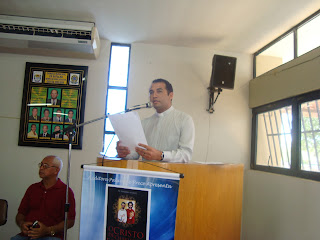 Em seu pronunciamento, o Padre falou que sua admiração por Ir. Carlos começou ainda na adolescência, onde ao folheava livretos na biblioteca municipal. Saudou a todos que estavam na mesa, e também comentou que o Vereador Opa, foi um de seus professores mais exigentes.